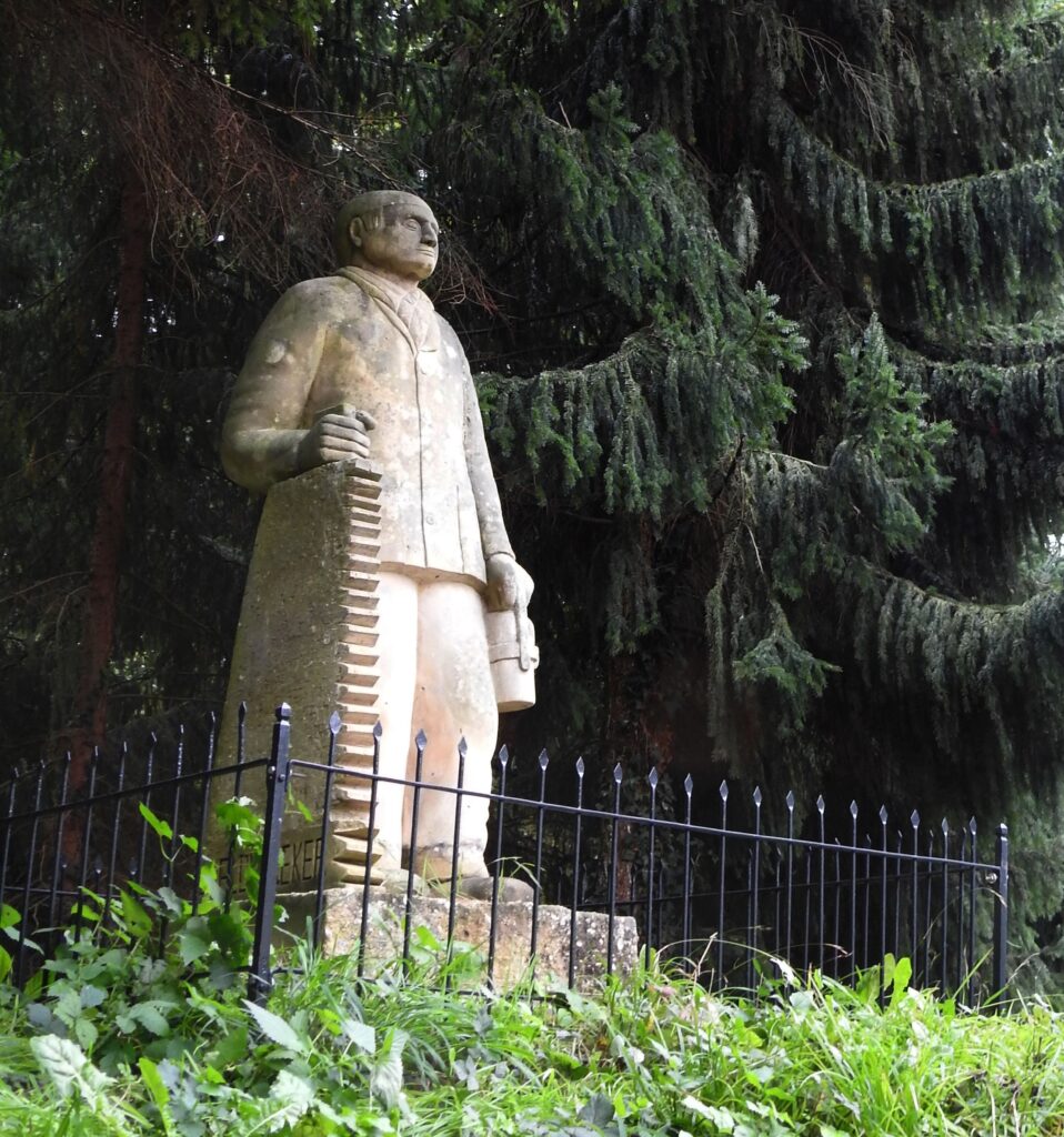 Na de doorkruipsessie staat het hele gezelschap na enige tijd weer buiten de groeve en is de gids hoorbaar nog niet uitverteld. Terwijl hij zijn weetjes over het bospad strooit, luister ik slechts met een half oor want ik zie onder de bomen de gemergelde blokbreker achter het stevige hek stoïcijns voor zich uit staan kijken. Is het vreemd dat ik een weinig verwantschap voel met dit, zwijgende maar alleszeggende standbeeld?