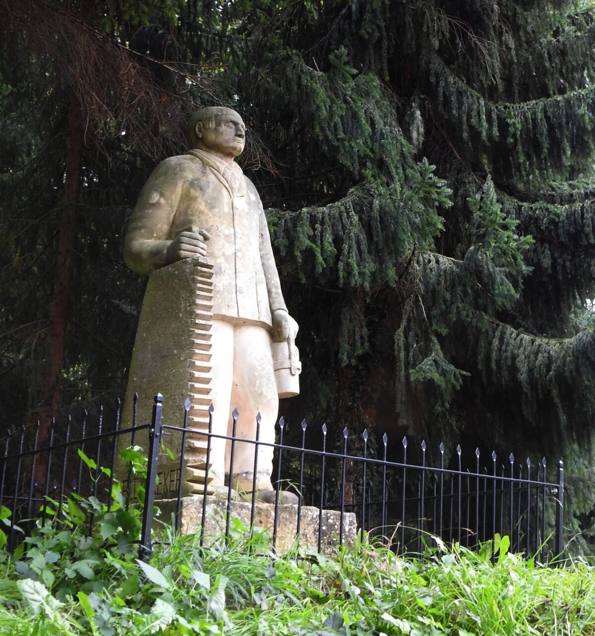 Na de doorkruipsessie staat het hele gezelschap na enige tijd weer buiten de groeve en is de gids hoorbaar nog niet uitverteld. Terwijl hij zijn weetjes over het bospad strooit, luister ik slechts met een half oor want ik zie onder de bomen de gemergelde blokbreker achter het stevige hek stoïcijns voor zich uit staan kijken. Is het vreemd dat ik een weinig verwantschap voel met dit, zwijgende maar alleszeggende standbeeld?
