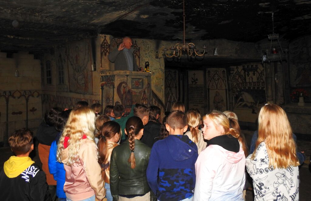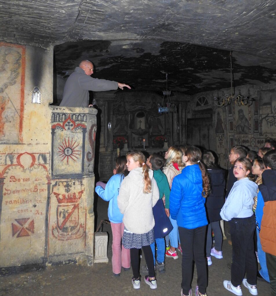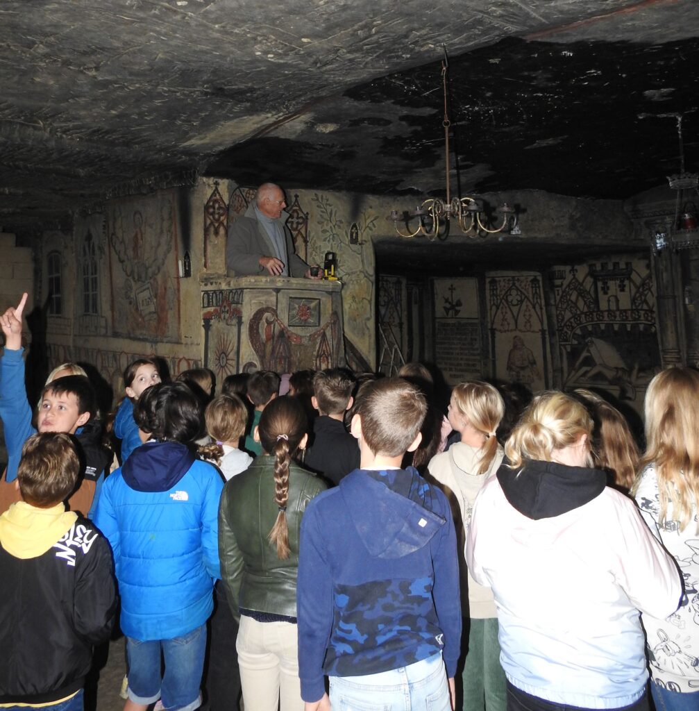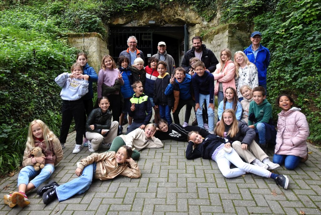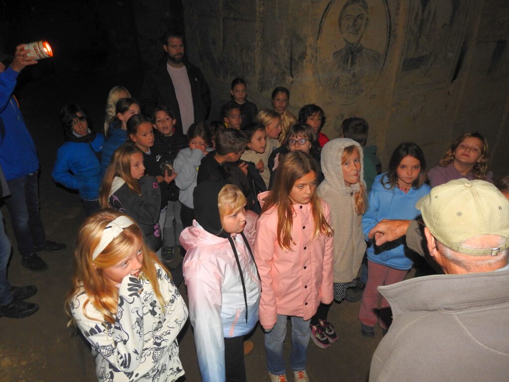 Gaande de wandeling, georganiseerd door Indertied in nauwe samenwerking met stichting ‘De Rotswoning’ (www.rotswoning.nl) en spreker Franske, werden de 120 miljoen jaren opeens 125 miljoen jaar, maar het zijn kniesoren die op een jaartje meer of minder letten, zeker wanneer 4 volle big bags met weggegooide reclamefolders plotseling 5 volle big bags worden. Weggegooid in een plafondse schacht die door de vrijwilligers in de groeve weer open werd geboord. Het jonge gehoor vond het prachtig en bij momenten ook spannend, héél spannend. Zeker wanneer het te volgen licht om het hoekje van een gang verdween. Jeugdige meligheid nam bij momenten de spanning weg maar feit bleef dat de groep angstvallig bijelkaar bleef. Heldenmoed vonden de stoersten zelfs overbodig. Die zag je toch niet in de duisternis was de conclusie van een der opeens niet meer zo stoeren.