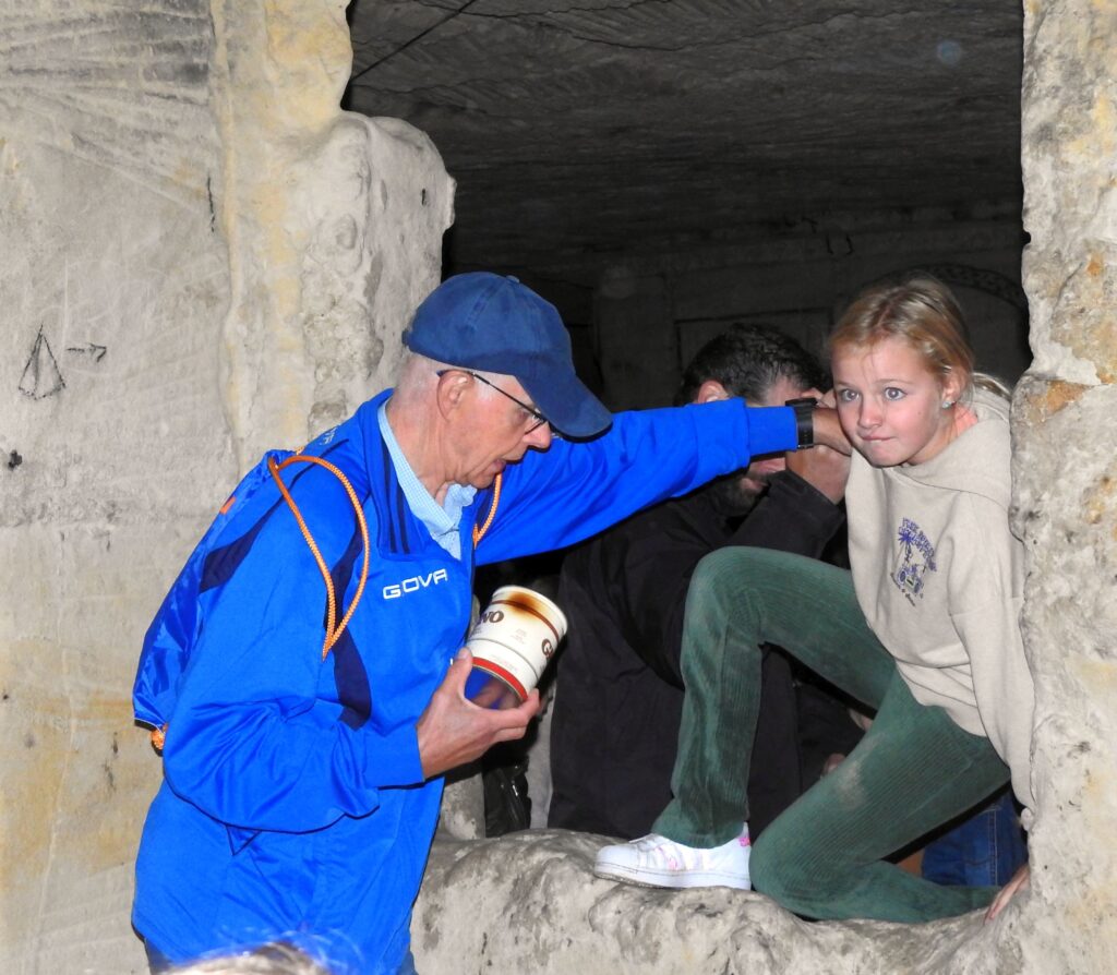 De jongens en meisjes mochten nog – heel spannend – door een gat in de mergelwand kruipen om hun een gevoel te geven hoe de blokbrekers dat in heel vroeger jaren ook moesten doen. Alleen, hier stond aan de andere kant van het gat, de Jack, die iedere doorkruiper met vaardige hand weer stevig op de benen zette.