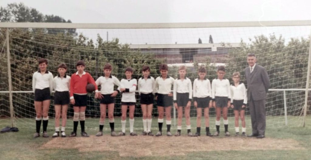 En ook nu, tijdens de laatste honderden meters van de wandeling, leken de waterlanders niet veraf, waren er veel, heel veel bemoedigende woorden van zijn wandelmaten nodig om het bijna 60 jaren opgekropte verdriet bij hem zacht en begripvol schouderkloppend tussen de oren weg te tikken. Wandelende medespelers van indertied spraken indringend op hem in en toen het eindpunt van de wandeling bereikt werd, leek het jarenlange trauma te zijn opgelost. Althans, dat namen zijn troostende wandelmaten aan, want toen we bij het eindpunt arriveerden, bleek dat hij opeens pizza’s moest gaan bakken voor zijn kleinkinderen terwijl hij wist dat er meerdere blonde rakkers achter de witte deur van het eindpunt op hem stonden te wachten.