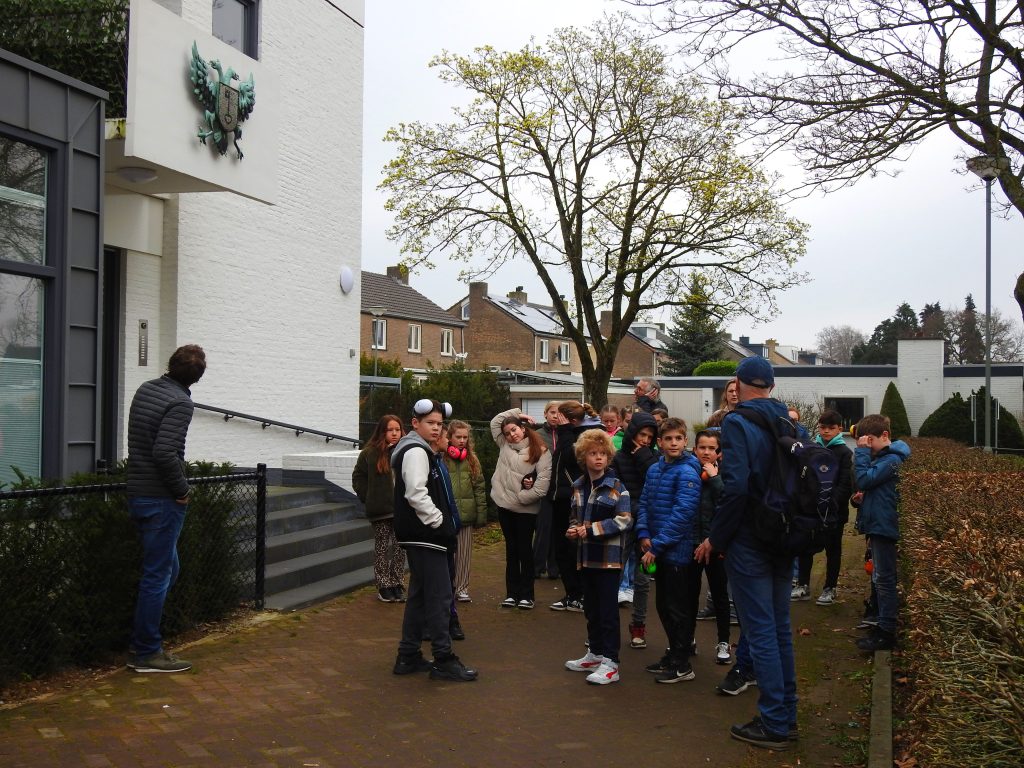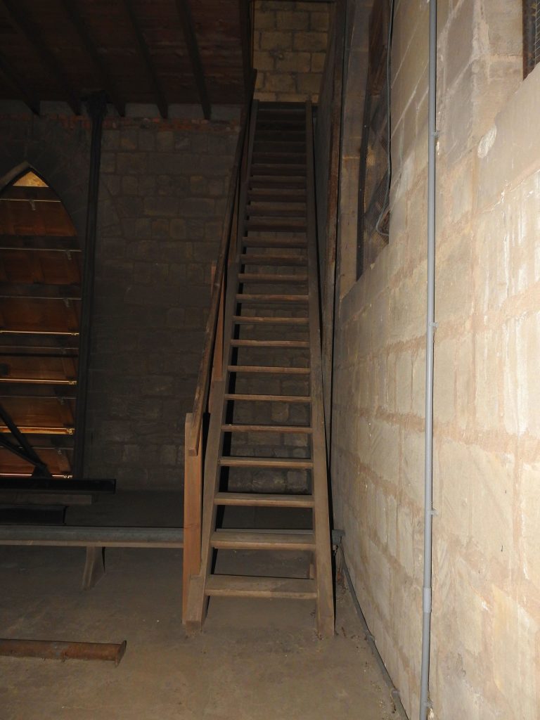 En dan … gaat het nóg een trapje hoger. En wordt de ruimte die leidt naar de torenhoge torenspits, bereikt. De ah’s en oh’s zijn niet van de lucht maar wel hoog in de toren te horen. Armand probeert zich op dit hoge platform voor een nadere uitleg hoorbaar te maken maar tegen het geluid van de een verdieping lager, door de jeugd, handmatig op gang gebrachte klokgelui kan hij, of beter, zijn stem, niet op. Het kan de pret en interesse van de zevendeklassers niet drukken. Niet in de toren en even later, na een voorzichtige afdaling, ook niet wanneer het gezelschap – danig onder de indruk – weer terugkeert naar school en bank.