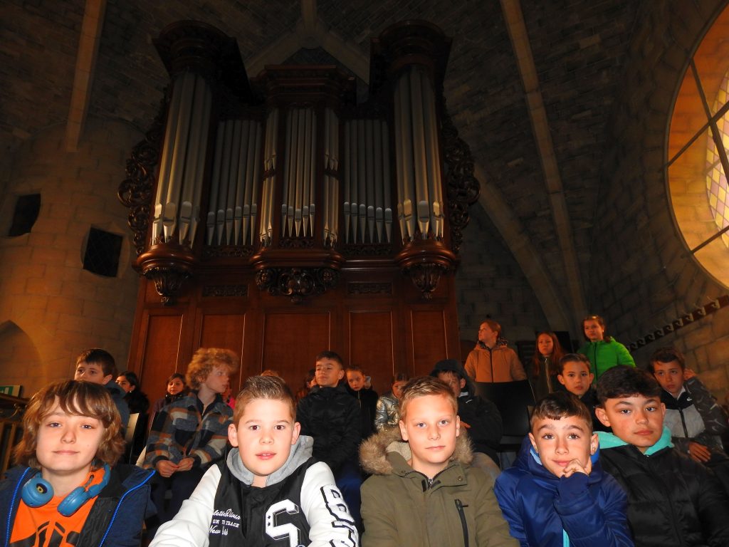 Na een oriënterende en verbale rondgang langs kaarsen, staties, Maria, Jozef en het altaar gaat het richting de vandaagse hoge doelen. De 58 meter hoge kerktoren, het oksaal met orgel en de klokken. En dus worden de rechte en wentelende trappen bestegen, wordt het oksaal bezichtigd en bewonderd, mogen de durvers een riedeltje op het orgel spelen, na een korte masterclass van organist voor één minuut, Armand. Maar nog vóór de jeugd bezit neemt van het grote toetsenbord duwen alle(r)heiligen hun vingers in de oren. Eén keer raden waarom.