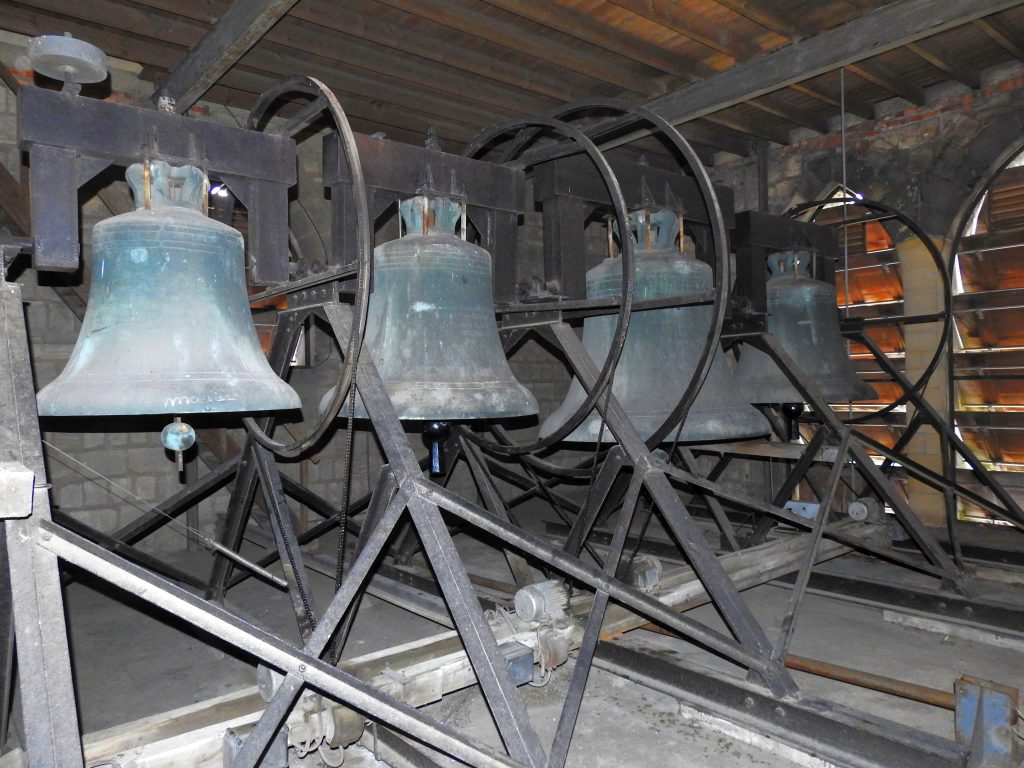 Na dit muzikale (muzikale?) intermezzo gaat het nog steiler omhoog. Het volume der stemmetjes nog meer omlaag. Het wordt nu wel héél hoog. Tussen de 4 grote klokken. Tussen het Mariaklokje, de Monulphus-, de Gondulphus- en de al eerder genoemde superzware Christus Koningklok. Net vóór 11.00 uur. En klokslag elf klinken de 11 beiers luid door de ruimte, door de galmgaten, over het dorp. En iedereen in de ruimte staat erbij, kijkt ernaar en houdt de vingertoppen in de oren of heeft – heel slim – meegebrachte beschermers op de oren geplaatst. Dof, galmend en vooral indrukwekkend, dit gelui. Het is dat de klok slaat, anders zou je een speld kunnen horen vallen, zo zwijgend stil is het wanneer de jeugd luistert. Gids Jack loodst de jeugd vervolgens door de verdere historie van de kerk, verhaalt van de roof der klokken in de Tweede Wereldoorlog en laat de jongeren nadenkend beseffen dat de vredelievende klokken van toen gebruikt werden om verder dood en verderf te zaaien.