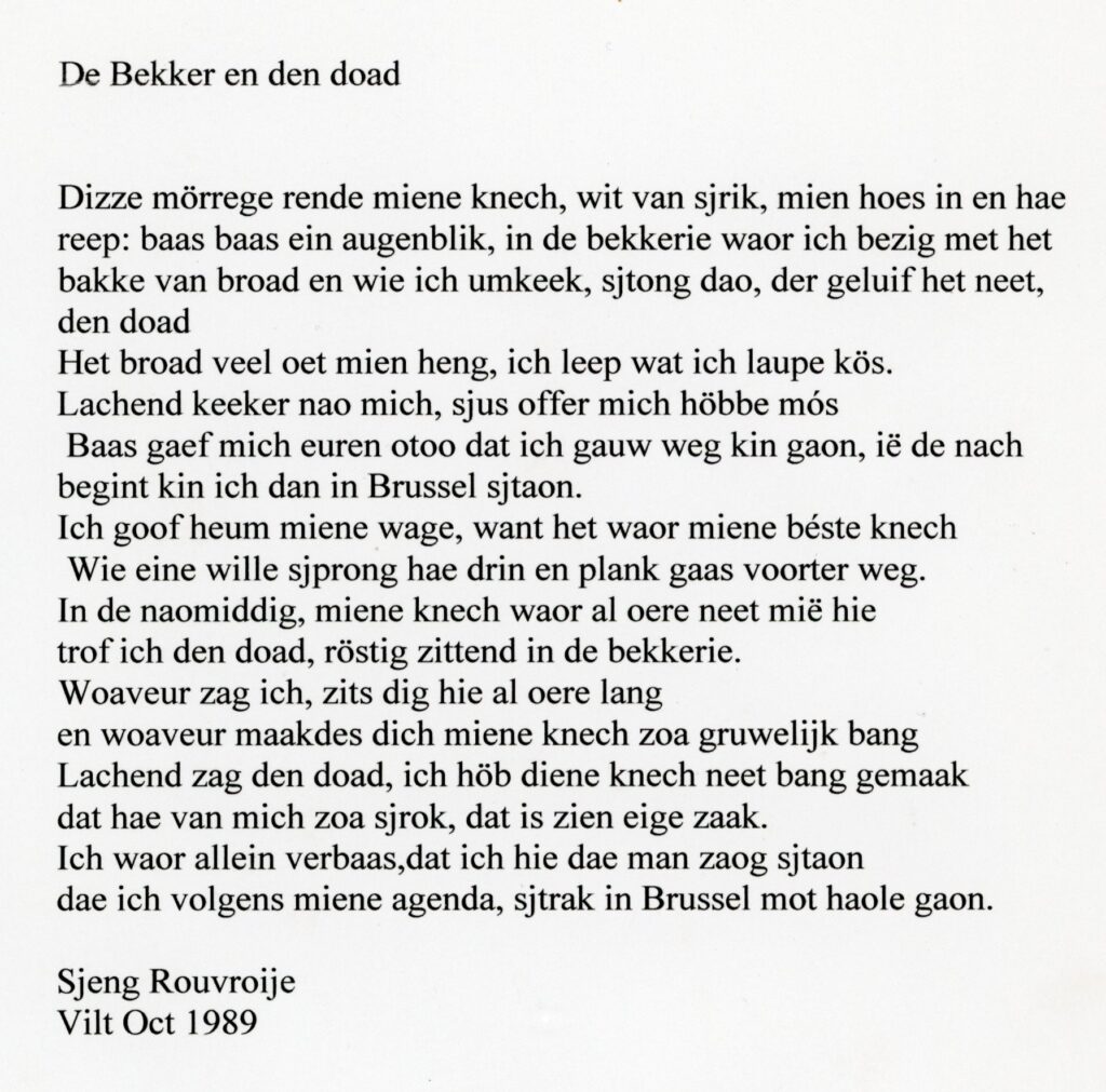 En met dat esjkruuske gedink veer dan os sjterfelijkheid.