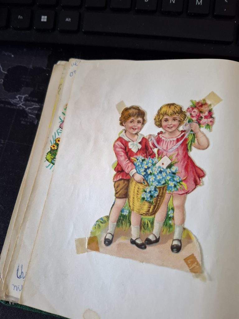 Terwijl ik probeer de blaadjes ietwat te ordenen, vraag ik me af of deze poesies nog bestaan. Ik ben inmiddels wel bekend met de huidige vriendenboekjes, van meisjes én van jongens, maar die zijn toch anders dan die poesiealbums van vroeger. Of… en dat kan natuurlijk ook, is het vriendenboekje van nu de moderne versie van de poesie van toen?
